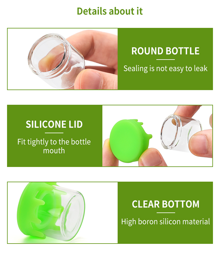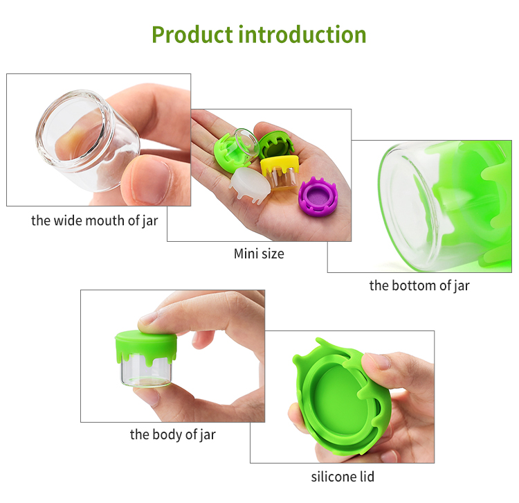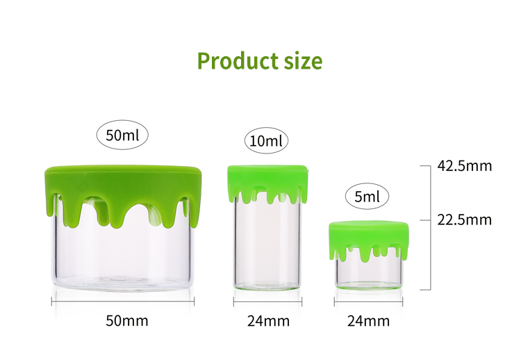 5ml 10ml 50ml no neck silicone container wide mouth glass jar smell proof glass jar with color silicone lid